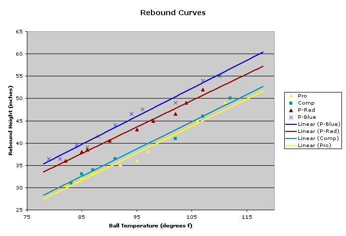 Note: this rebound test was done with a different drop height than the one used in Balls, Bounce and Surface Temperature.